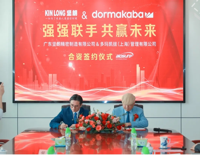2025年4月7日,坚朗五金旗下子公司广东坚朗精密制造有限公司与全球门控安防解决方案领导者——多玛凯拔(上海)管理有限公司举行签约仪式、成立合资公司,将以“Biosure”品牌共同开拓中国高速增长的酒店业市场。